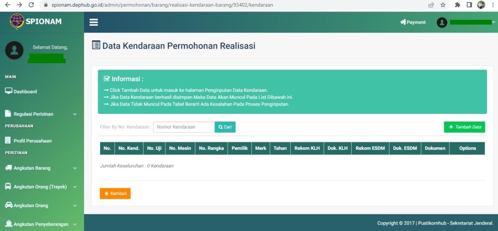 SETELAH MENDAPATKAN REKOMENDASI DARI KLHK PEMOHON MENGAJUKAN PERMOHONANNYA KE KEMENTERIAN PERHUBUNGAN DAN UNTUK MODA ANGKUTAN DARAT KE DITJEN HUBDAR.